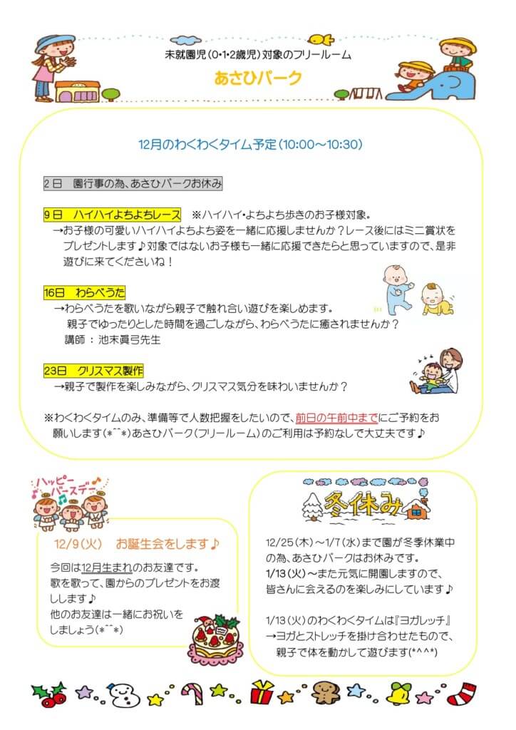 今年度より未就園児(0・1・2歳)を対象としたフリールーム”あさひパーク”を開設します。